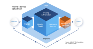 The service value chain comprises six activities that an organization takes in the creation of value: